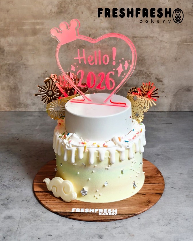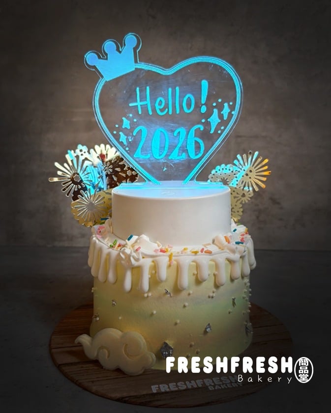 HAPPY 2026 蛋糕 原價$298 特價 $238/5 寸 餡:雜果 7寸以上可以轉餡 燈牌 (可以自由創作寫上祝福語) (會發光💡)